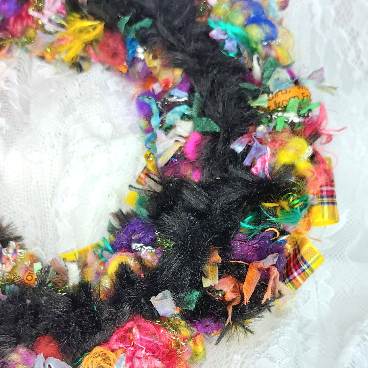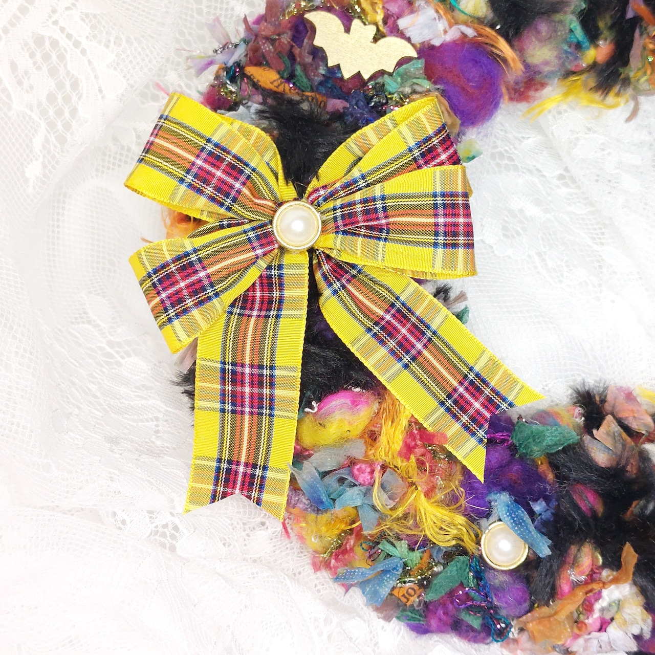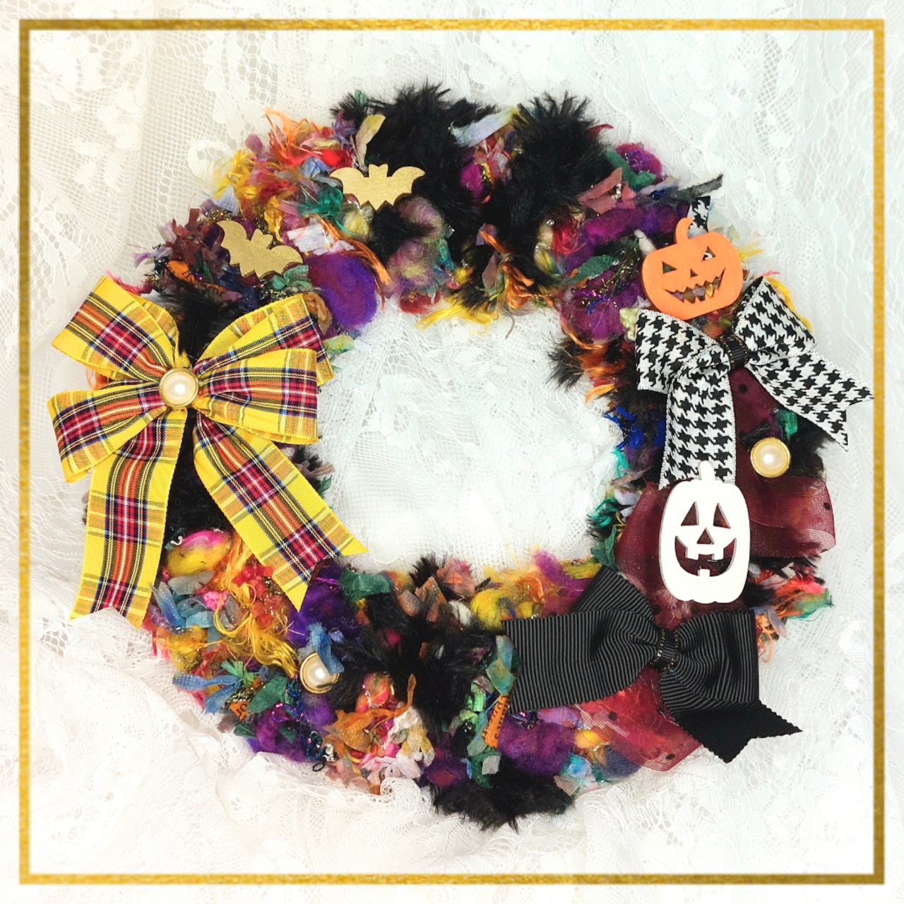ふわふわ♡カラフルハロウィンリース アートヤーン使用